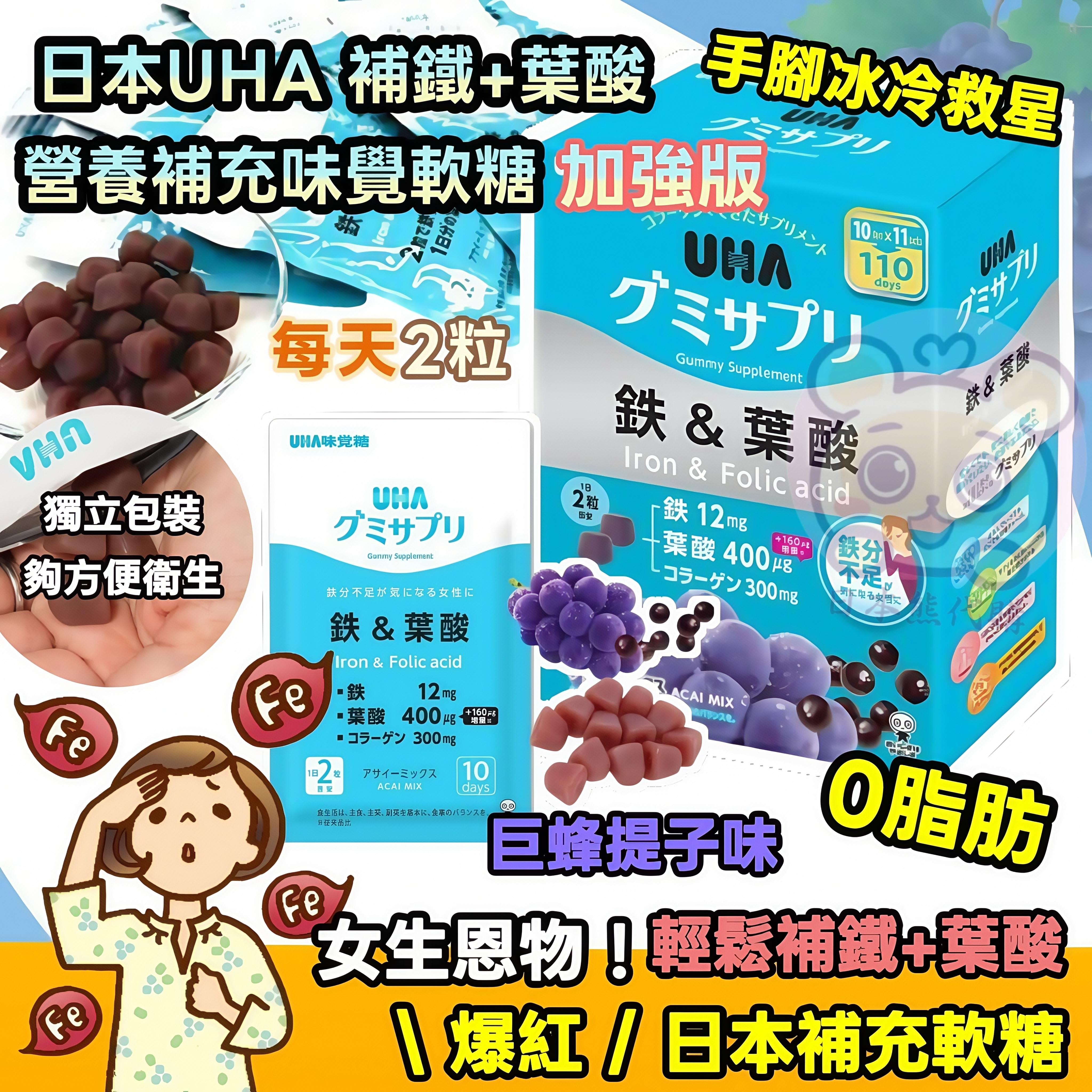 日本爆紅 UHA 補鐵+葉酸 營養補充味覺軟糖 加強版