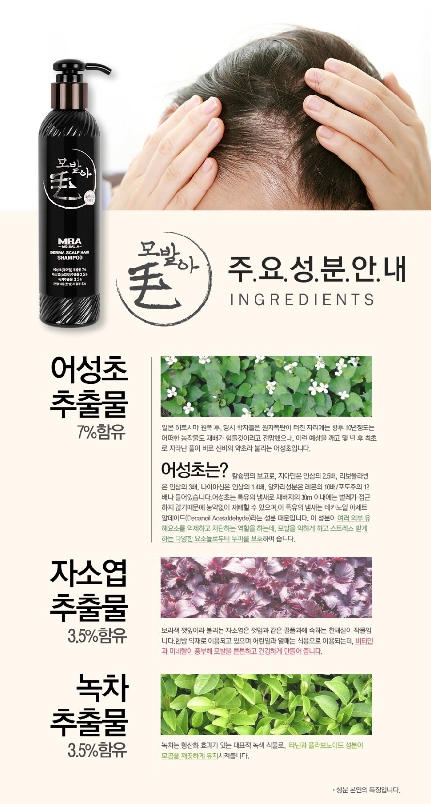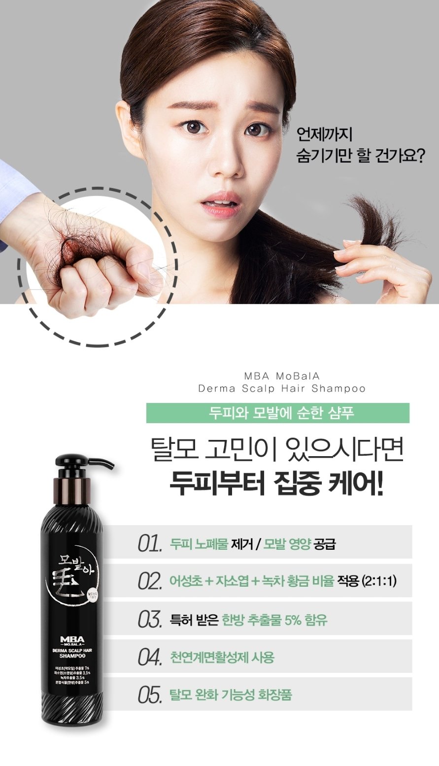 韓國Daycell MBA 專利防脫髮頭皮護理洗髮水 230ml 😍😍一支能緩解脫髮症狀、強健髮根的功能性洗髮水 並且能緩解毛囊炎症狀,做到頭皮護理‼️ ✅️✅️應用專利頭髮和頭皮的護理成分 無論性別或年齡,脫髮都是一個令人擔憂的問題😑 而韓國MBA是專門提供頭髮/頭皮護理解決方案的品牌。 🚨如果您擔心脫髮,請首先關注頭皮護理! 01. 去除頭皮垃圾/供給頭髮營養 02. 艾草、紫蘇葉、綠茶的黃金比例(2:1:1) 03. 含有5%專利草本萃取物 04. 使用天然界面活性劑 05. 脫髮緩解功能性產品 「韓國MBA DERMA SCALP HAIR SHAMPOO 專利防脫髮頭皮護理洗髮水」是非常適合密集的頭皮和頭髮護理,亦適合所有髮質! ✅️ 加入艾草、綠茶、紫蘇葉等9種專利草本成分等防脫髮功能性成分,呵護鬆弛脆弱的頭髮和晨髮,讓秀髮健康有彈性。 使用黃金比例溶液進行密集護髮 2:1:1 7%魚腥草萃取物,3.5%紫蘇葉萃取物,綠茶 3.5% 適合人群士: 擔心洗髮時使用風筒有機會掉髮的人 擔心M/O型禿的人 擔心頭髮稀疏或量少的人 因頭髮稀疏而難以進行造型的人 對於那些想要濃密有彈性的頭髮的人 生產地:韓國