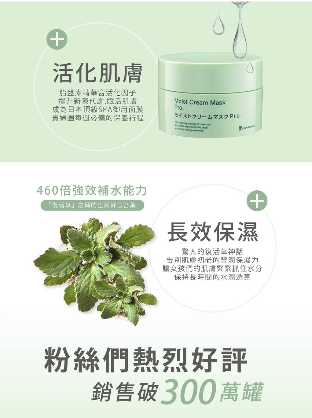 日本 BB Laboratories Moist Balanecing Mask pro. 復活草胎盤素最新Pro版鎖水面膜 175g