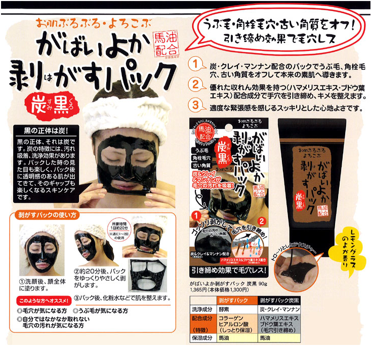 日本ASTY 馬油竹炭深層清潔 收毛孔袪角質撕拉式面膜 90g