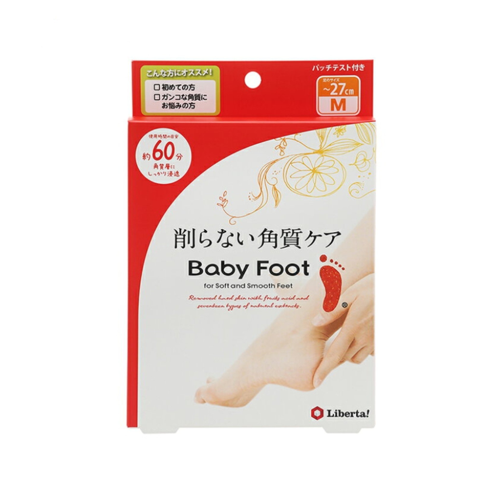 日本Liberta BabyFoot 60分鐘果酸去角質潤滑足膜 1盒1對M碼27cm
