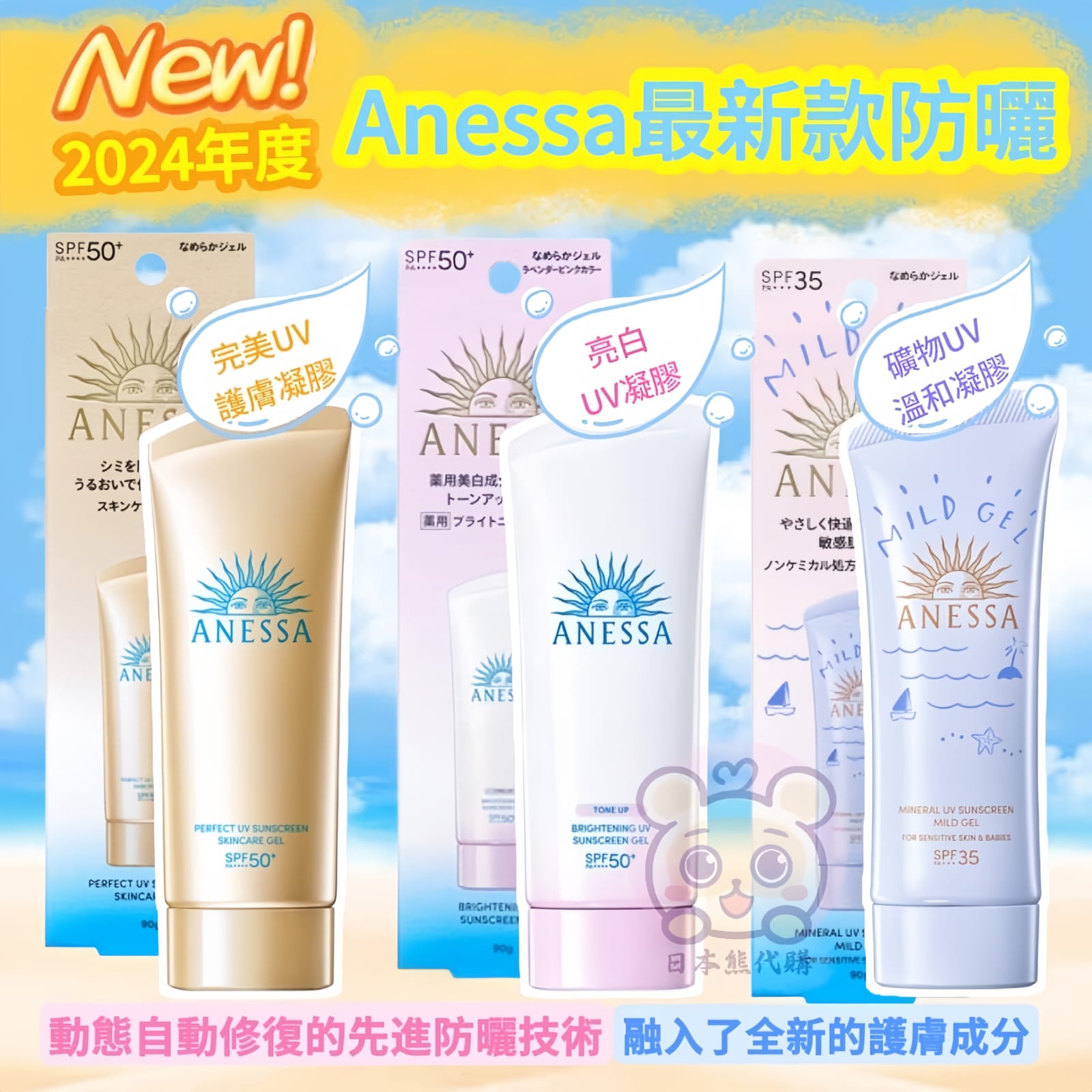 日本Shiseido ANESSA MINERAL UV SUNSCREEN MILD GEL 礦物UV溫和凝膠 SPF35 PA+++ 90g 最新推出