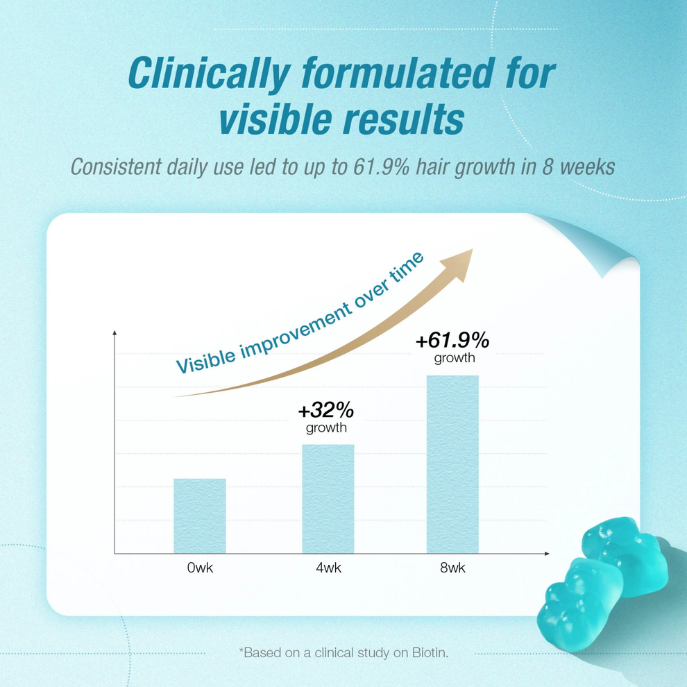 澳洲Teddi Lab® BY UNICHI 生髮養髮小熊軟糖 海鹽青提味 Plus升級版 60粒 屢獲殊榮的頭髮維生素,Plus升級版更添加 6,000mcg 生物素和獨特的 Silicassence™,可支持明顯更快的再生,減少脫髮,並改善頭髮的光滑度和強度。 銷量No.1 Unichi👍🏻科學專業配方,3樽為一個療程,髮量up up up ! 日日捱夜、壓力大,搞度頭髮甩唔停😵?✨ Unichi 小熊爆髮軟糖 科研實證增厚髮量🆙✨ 每日2️⃣粒輕鬆養出濃密豐盈秀髮,連髮膚甲一次呵護👍🏻! 特殊配方的含有 6000 微克生物素,其中含有鋅和泛酸,可支持頭髮生長和活力。 Unichi Teddi Lab Hair Boost Gummy PLUS 更採用科學配方,含有多種維生素(維生素 A、維生素 C、維生素 E)。 每顆咀嚼維生素軟糖都具有濃郁的海鹽和青提風味,共同作用以強化髮絲,促進頭皮健康,並增強整體頭髮的厚度。 官方建議三瓶一個週期療程!約連續吃三個月,這樣的效果最好! ⭕️全球生物素含量No.1%,含量是市面上普通產品的1.66倍 ,2粒6000微克,足量補充生髮護髮所需 ⭕️富含生物素、鋅、泛酸、維生素AICIE ⭕️生物素幫助角蛋白生成,修護髮芯、強韌秀髮,全面促生柔順秀髮。 ⭕️泛酸促進毛囊生長健康,髮根不斷新生。 ⭕️維生素A、C、E維持角質層正常代謝,養護頭皮、改善脫屑、秀髮亮澤柔順。 👇👇生物素👇👇 幫助能量代謝 有助於促進新陳代謝、產生能量並增強體力。 幫助頭髮生長 增加頭髮的彈性並防止乾燥,達到強健髮質、減緩脫落的效果。 維持指甲強健 生物素身為合成角蛋白的關鍵營養素,足量補充能提高指甲的強韌度,指甲防止斷裂、脆化。 增進皮膚與黏膜健康 幫助緩解過敏症狀,減輕濕疹或皮膚炎的不適反應。 維持神經認知功能 有助於延緩大腦認知功能退化、增強記憶力,對神經系統與大腦健康有益。 緩解多發性硬化症 減緩多發性硬化症的病程惡化、改善病症。 維持血糖穩定 有利於血糖控制 🔸使用方法:每日2粒咀嚼服用,建議空腹前吃 ⚠️注意事項:12歲以下的兒童不宜使用