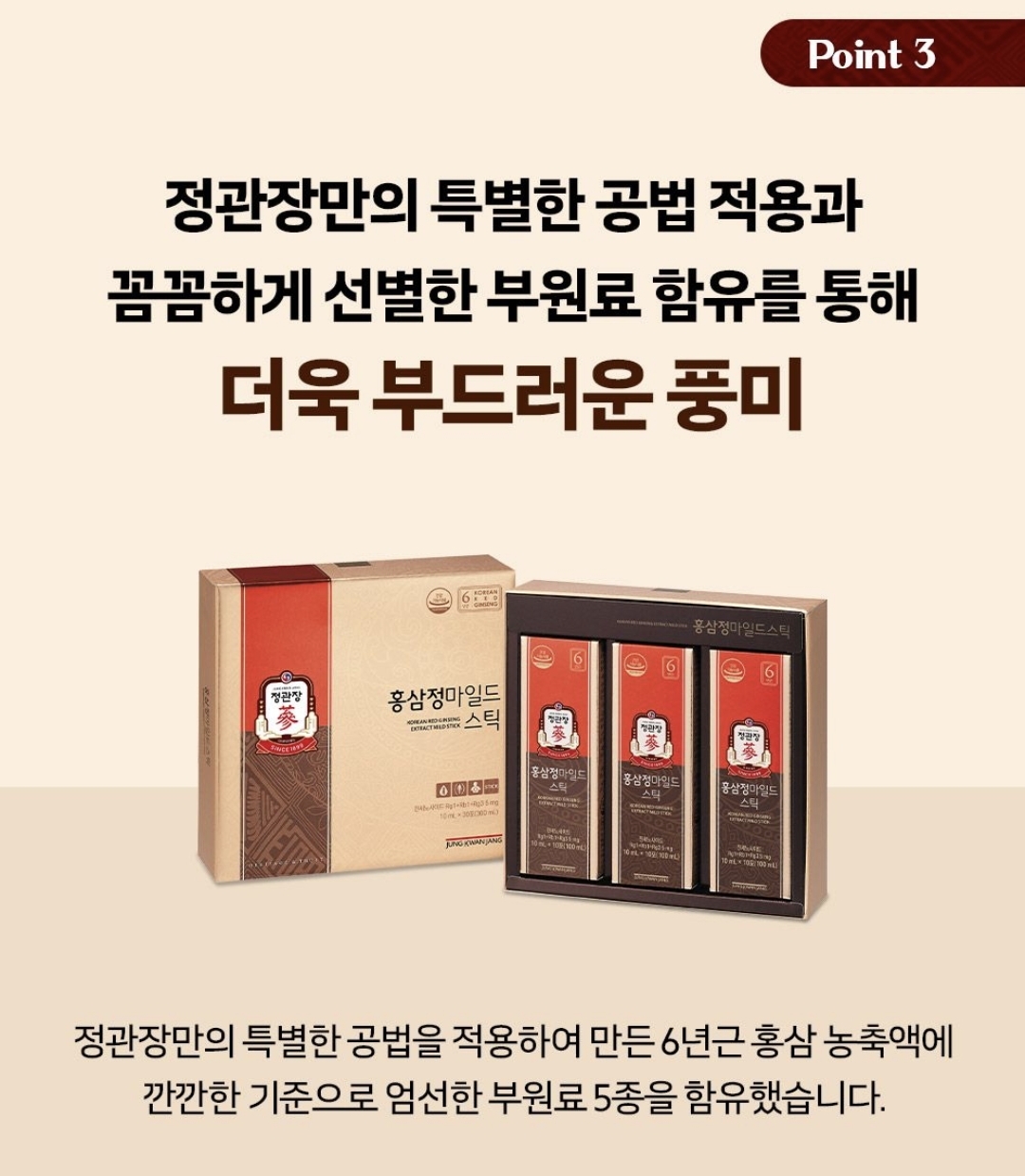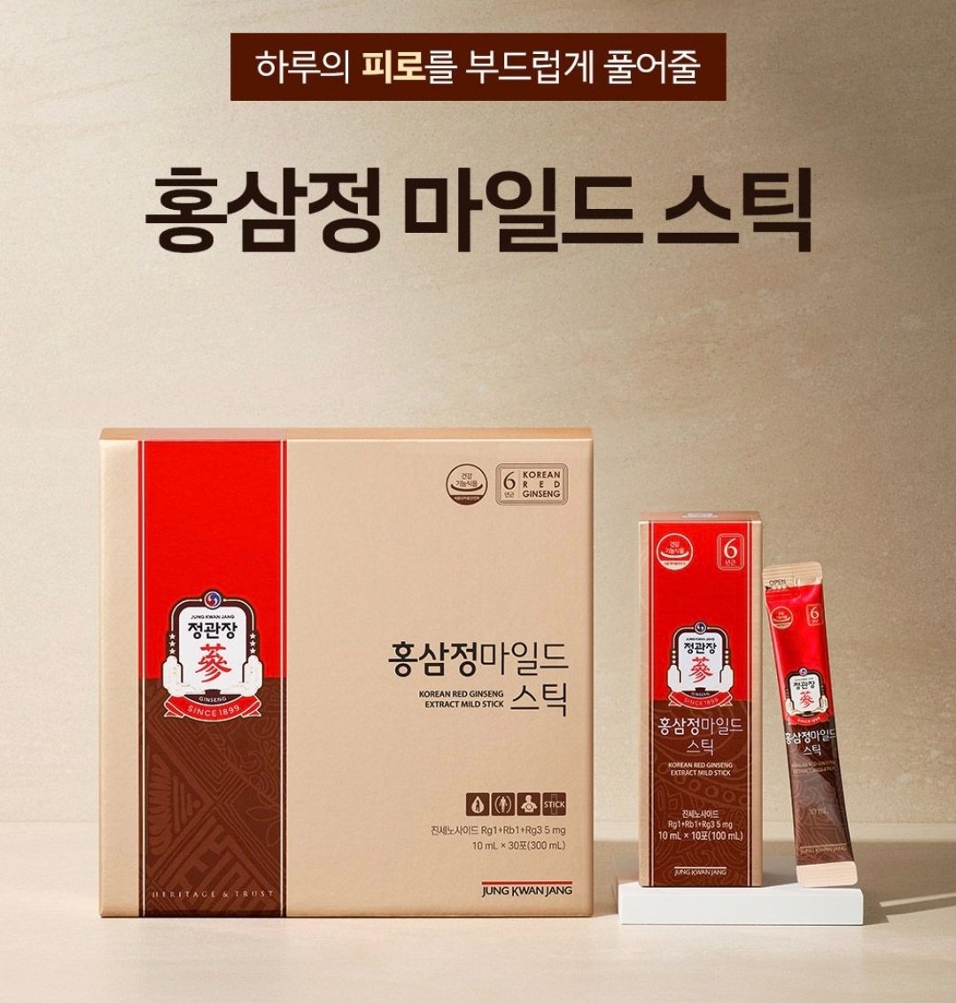 韓國正官庄EXTRACT MILD SENSE 温和型 高麗紅蔘濃縮液膏口服液禮盒裝 10ml x 30包 正官庄是絕無咖啡因的提神飲品🤩 持續飲用有助消除疲勞💪🏻讓精神及體力瞬間復活 適用: 睡眠不足人士 煙酒或應酬頻繁人士 容易疲倦、體質虛弱人士 工作繁忙、壓力大及疏於運動人士 想保持年輕、延緩衰老人士 與蔘精有同等功效!每包含高純度6年根高麗蔘精,全天然成份、百分百無添加。 採用長條小包設計,撕開即飲!獨立包裝更方便服用及攜帶。 正官庄EXTRACT MILD SENSE是絕無咖啡因的提神飲品,持續飲用有助消除疲勞,讓精神及體力瞬間復活! 是韓國最新人氣保健飲品! 建議用量: 每日一包,連續每天服食三個月達最佳效果 15歲以下食用成人量的1/2。 容量:10ml/包;30包 成份: 6年根高麗紅蔘濃縮液、椰棗濃縮液、榅桲濃縮液、生薑濃縮液、枸杞濃縮物、白樺茸萃取物粉 注意事項 : -請遵照每日建議用量服用,身體感到異常時請停止服用 -請確認原料,有相應食物過敏者請勿服用 - -特殊人群(如兒童、孕婦、哺乳期·藥物治療期間等人群),請諮詢醫師後服用 -健康食品對服用時間基本沒有規定,用餐後服用更易消化吸收 -請於食用後立即關緊封口並儘速食用完畢 -請置於陰涼乾燥處,避免陽光直射 -內附之乾燥劑/脫氧劑,請勿食用 -請置於幼兒無法取得之處 - 使用後若有不適等狀況,請停止使用並請教專業醫生 -請勿將產品放在陽光曝曬的地方 圖片只供參考, 基於不同地區 / 版本, 包裝亦會有所不同 一切根據實物為準 -個別人士或不宜服用,包括但不限孕婦、哺乳中的婦女、7歲以下的兒童、患有高血壓、心臟病、長期病患者、病者、正服用任何藥物之人士等,服用前應諮詢醫生意見,確認此產品適合你的需要。 -如服用後有任何不適、過敏反應或特別症狀,請立即停服並諮詢醫生。