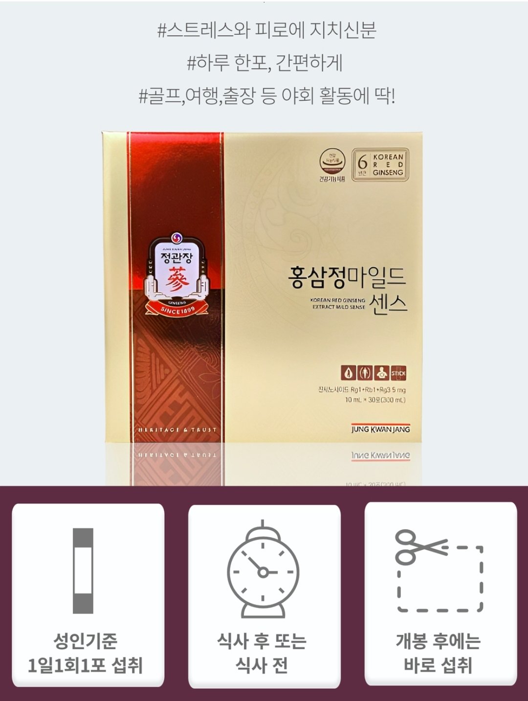 韓國正官庄EXTRACT MILD SENSE 温和型 高麗紅蔘濃縮液膏口服液禮盒裝 10ml x 30包