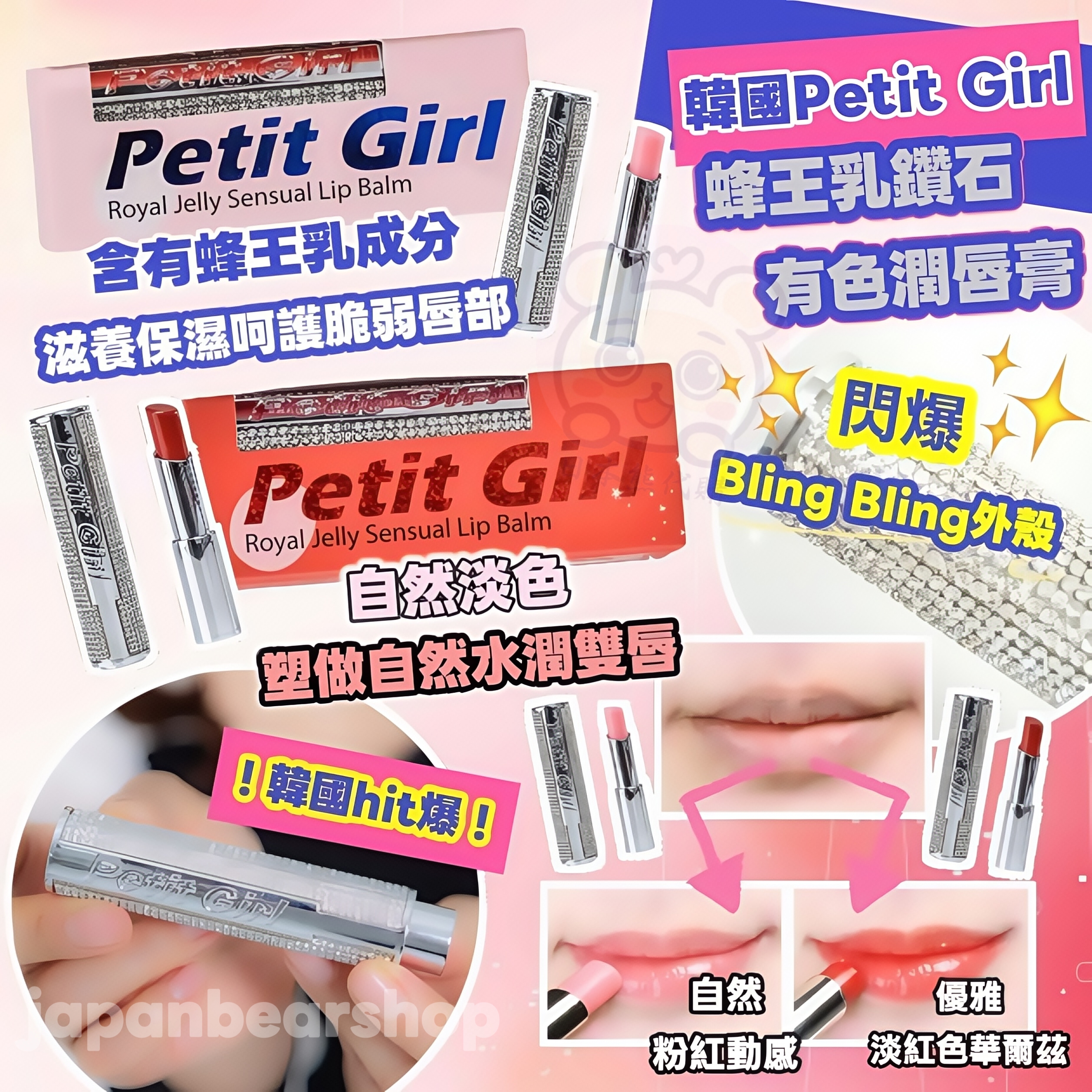 韓國Petit Girl Royal Jelly Sensual Lip Balm 蜂王乳鑽石有色潤唇膏 3g 2色選擇