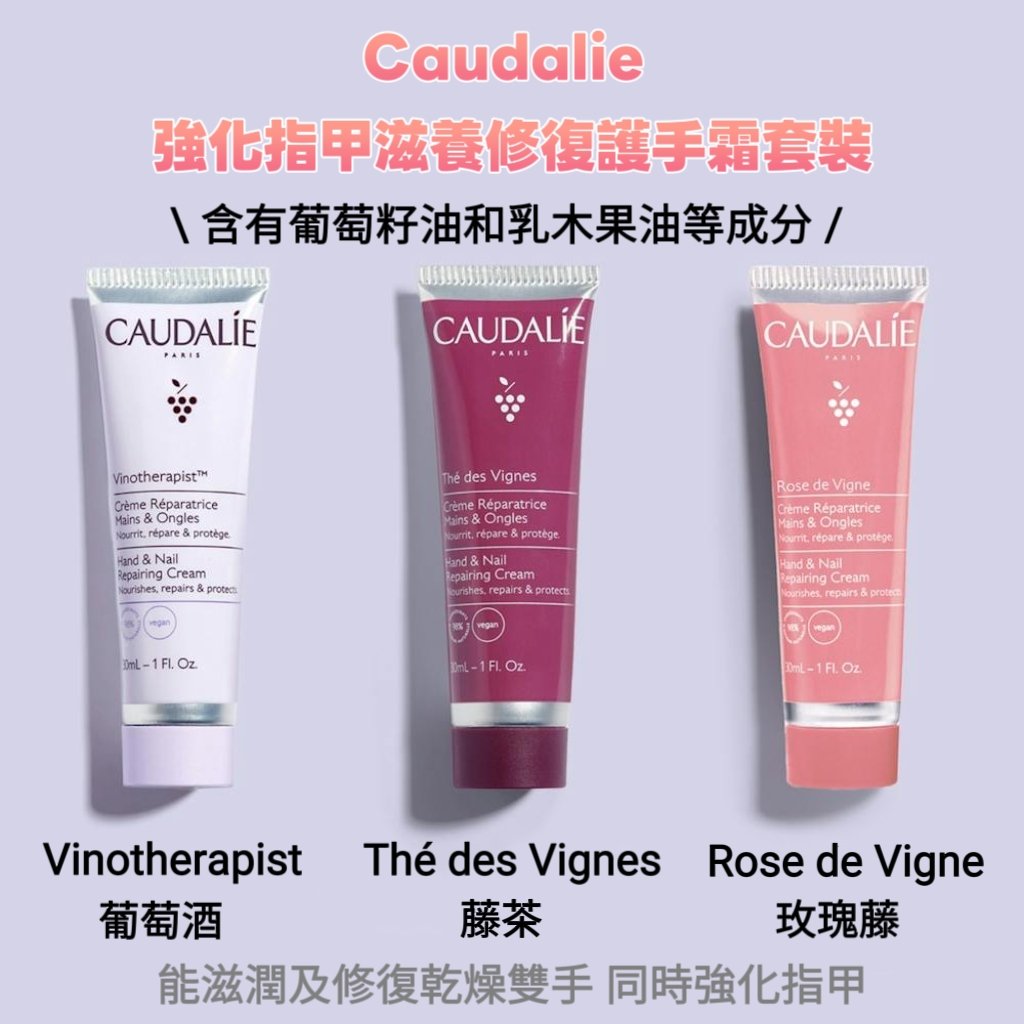 Caudalie 強化指甲滋養修復護手霜套裝 一盒3支 每支30ml 👍🏻 快吸收不黏笠,搽完後即使掃電話都唔會有指印,超級推薦‼️ 送比朋友唔失禮或者隨身袋住都一流🩷 包含3️⃣款每支30ml的護手霜: 1️⃣ Vinotherapist 葡萄酒 2️⃣ Thé des Vignes 藤茶 3️⃣ Rose de Vigne 玫瑰藤 ✅️ 護手霜含有葡萄籽油和乳木果油等成分,能滋潤及修復乾燥雙手,同時強化指甲。 其配方快速吸收,使用後不會有黏膩感。 素食主義者適用且零殘忍的產品。