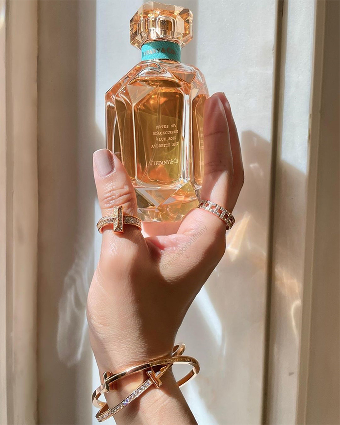Tiffany & Co. Rose Gold Eau de Parfum 75ml 採用獨特的藍玫瑰,令人置身於花園一樣🌹 Tiffany Rose Gold 香氛明亮爽朗而充滿活力,體現出樂觀精神。 此香氛由 Robertet 的香水大師 Jerome Epinette 調製,充滿活力的黑加侖子前調,清新而迷人。 香氛的核心為藍玫瑰,這是由日本玫瑰和紫羅蘭混交而成的獨特品種。 香氛的成分中加入了細緻的檸檬香調與花卉香調,向香氛的靈感致禮。 後調的黃葵籽帶來深濃的麝香與鳶尾花香氣,打造出溫暖的氛圍。 前調: 黑加侖子 中調:藍玫瑰 後調:黃葵籽